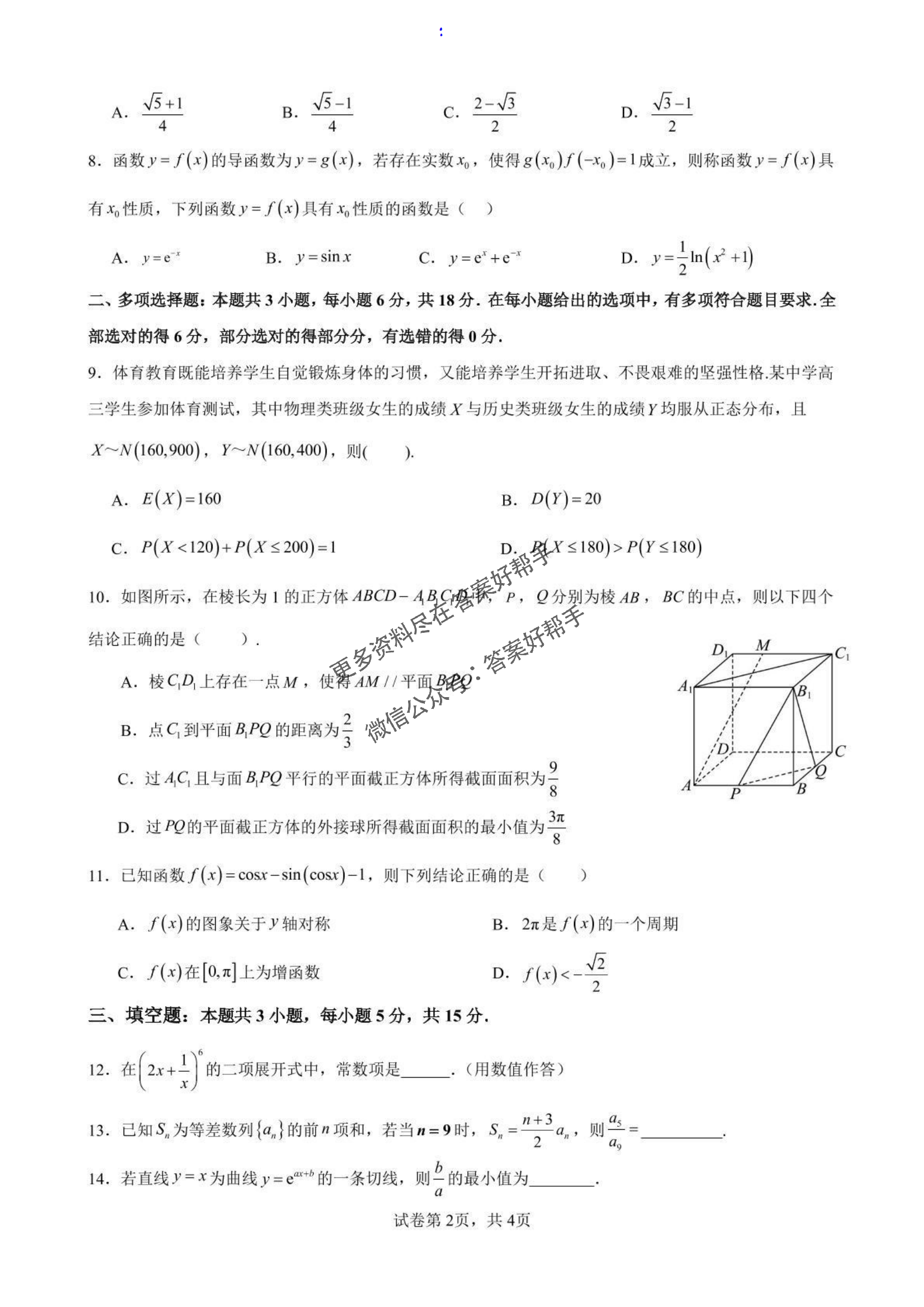 青春热血,学习正燃!把压力化为动力,将挫折转为经验。以专注之心深耕知识,用拼搏之姿迎战挑战,我们定能在学海浪潮中,成为最耀眼的弄潮儿!向大家分享广东省深圳市高级中学高中园2025届高三高考适应性考试(全科) 数学试卷