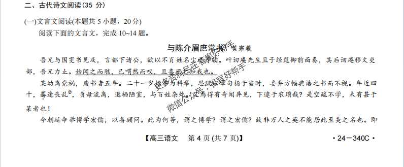 10.文中画波浪线的部分有三处需要断句,请用铅笔将答题卡上相应位置的答案标号涂黑,每涂对一处给1分,涂黑超过三处不给分。(3分)