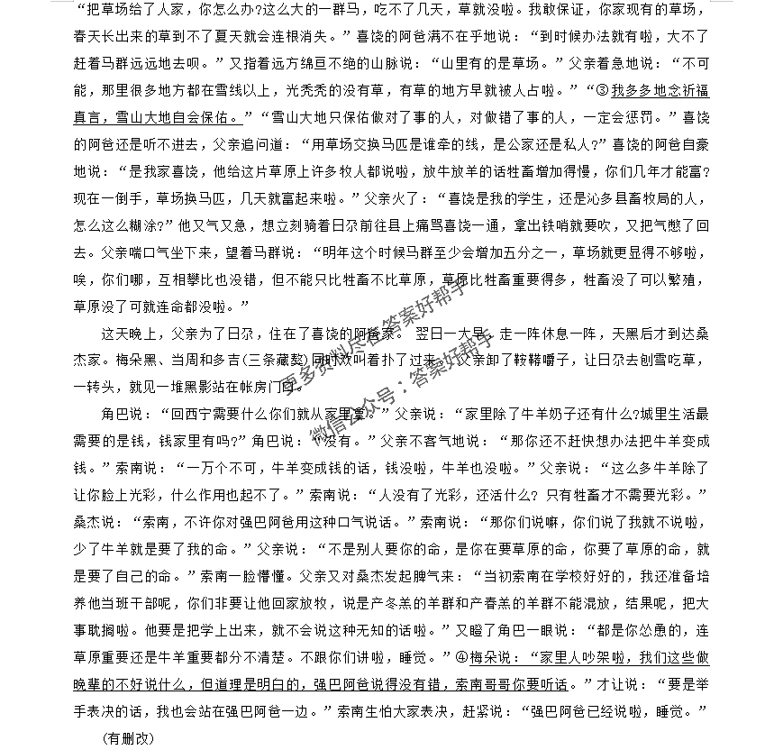 D.“父亲”批评桑杰让索南回家放牧,桑杰认为索南比不上同学,就如同产冬羔的羊群和产春羔的羊群不能混放。