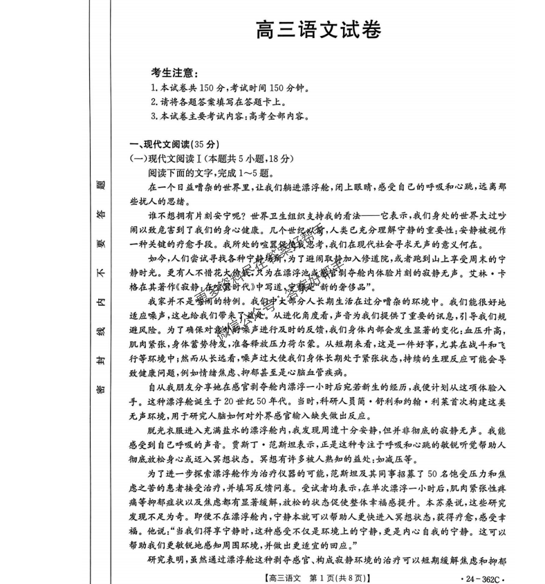 2024届江西金太阳高三3月联考(362C)语文
