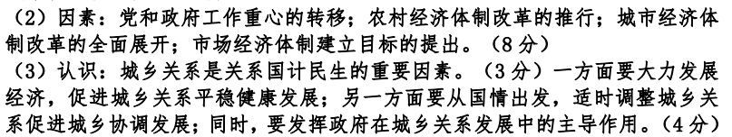 (2)根据材料二并结合所学知识,指出影响20世纪70年代以来中国城乡关系发生变化的主要因素。(8分)