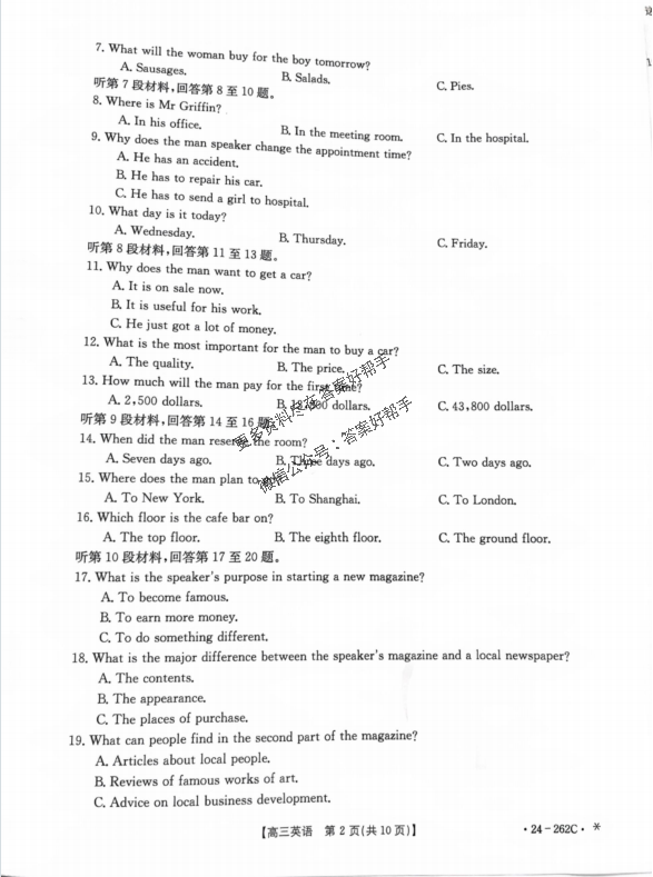 做题时,先将答案标在试卷上。录音内容结束后,你将有两分钟的时间将试卷上的答案转涂到答题卡上,