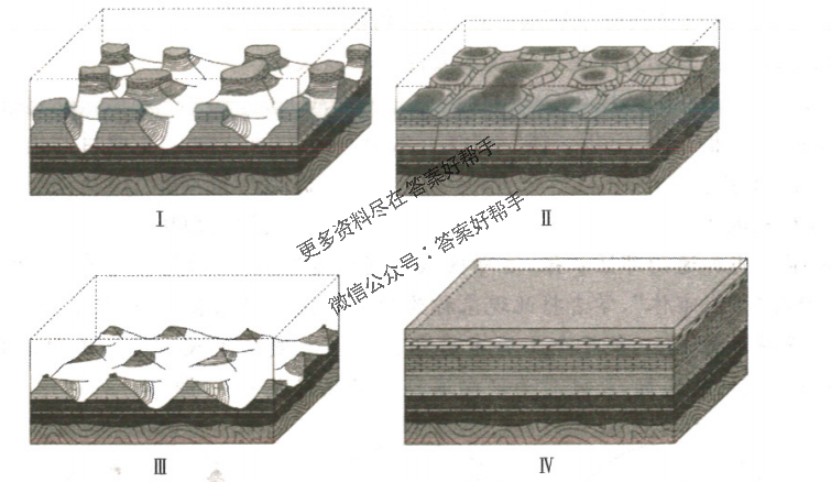 山东沂蒙山形成大面积“顶平”“身陡”的方山地貌。方山地貌的物质基础为巨厚的石灰岩和泥岩。下图示意沂蒙山方山地貌演化的不同阶段。据此完成12~13题。