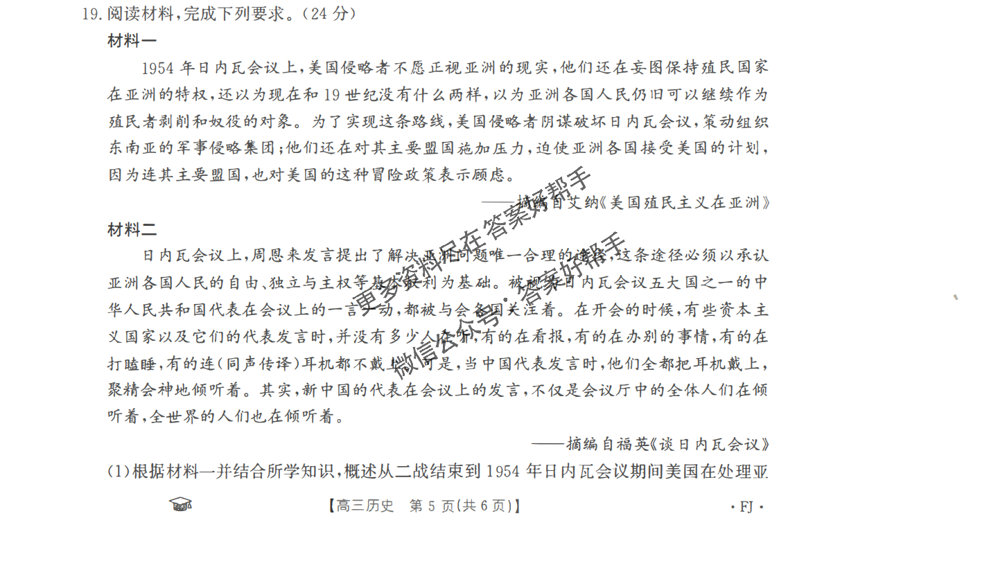 (1)根据材料一并结合所学知识,概述从二战结束到1954年日内瓦会议期间美国在处理亚