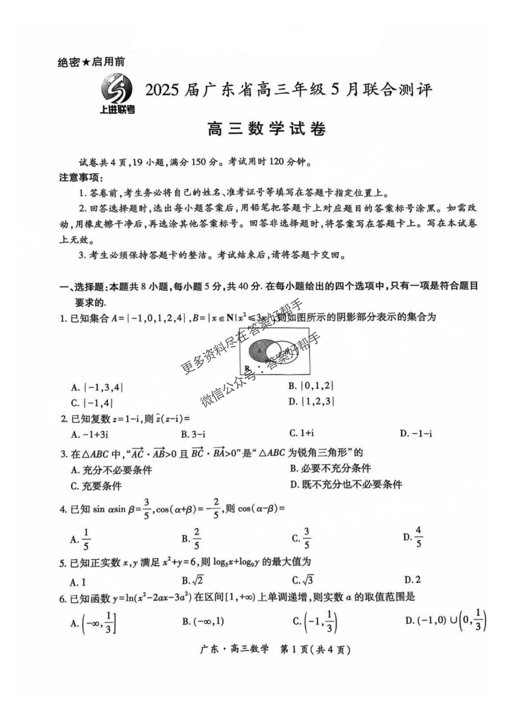 “天才是百分之一的灵感,加百分之九十九的汗水。”—— 爱迪生 才华需要努力浇灌,那些看似天赋异禀的人,不过是把努力熬成了习惯。汗水终将照亮未来。向大家分享广东省上进联考2025届高三5月联合测评 数学试卷