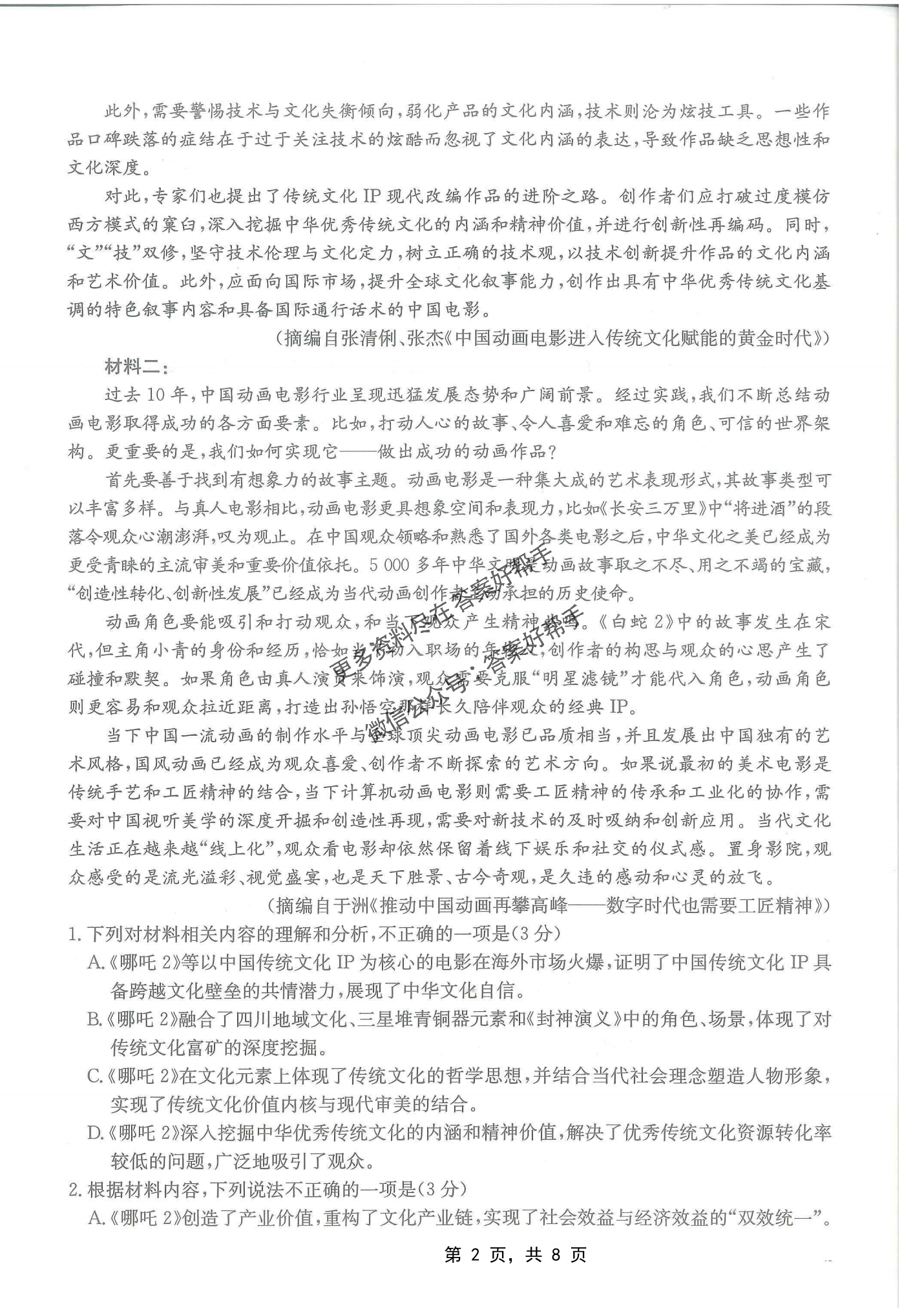 别被困难吓倒,再难的知识点,分解开来逐个击破;再复杂的题目,理清思路也能找到解法。相信自己,你一定可以!在此向大家分享重庆市金太阳2025届高三5月联考 语文试题