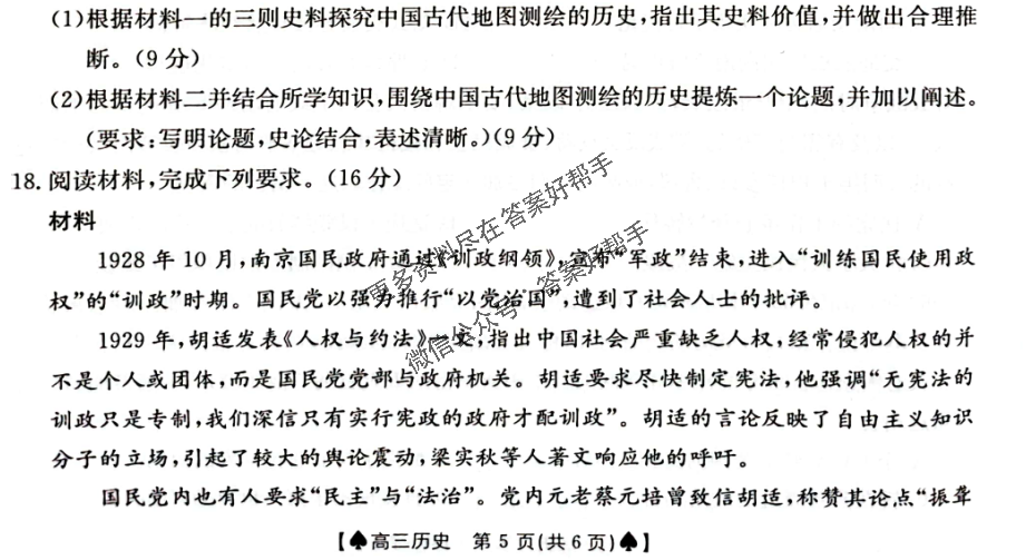 --摘编自葛剑雄《中国古代的地图测绘》(1)根据材料一的三则史料探究中国古代地图测绘的历史,指出其史料价值,并做出合理推断。(9分)(2)根据材料二并结合所学知识,围绕中国古代地图测绘的历史提炼一个论题,并加以闸述(要求:写明论题,史论结合,表述清晰。)(9分)