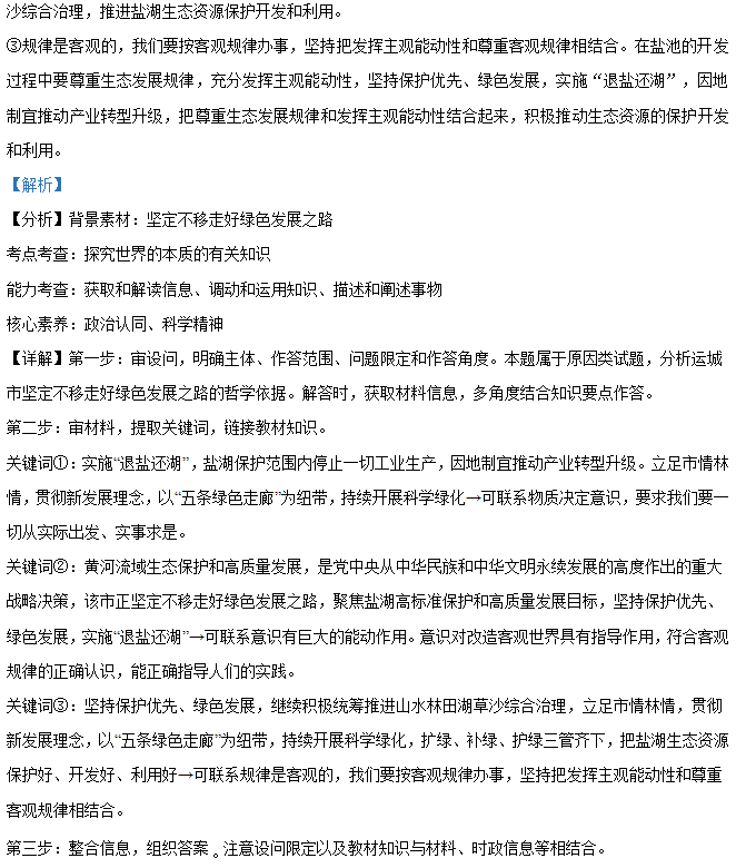 结合情境,运用“探究世界的本质”的知识说说运城市坚定不移走好绿色发展之路的哲学依据。